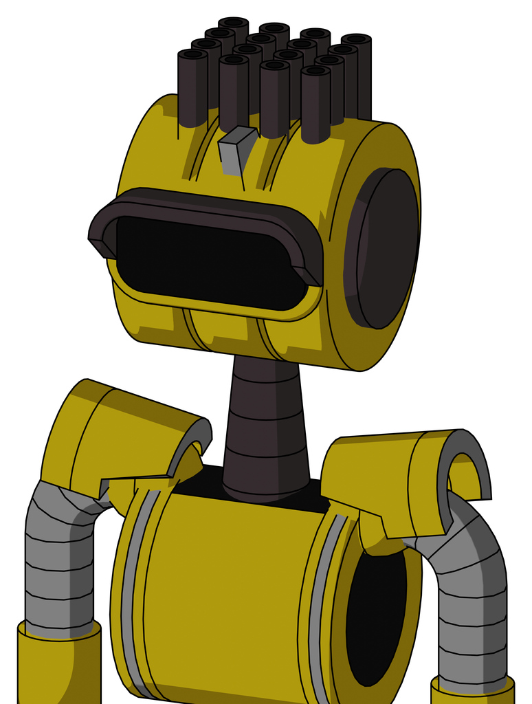 Yellow Automaton With Multi-Toroid Head And Black Visor Eye And Pipe Hair