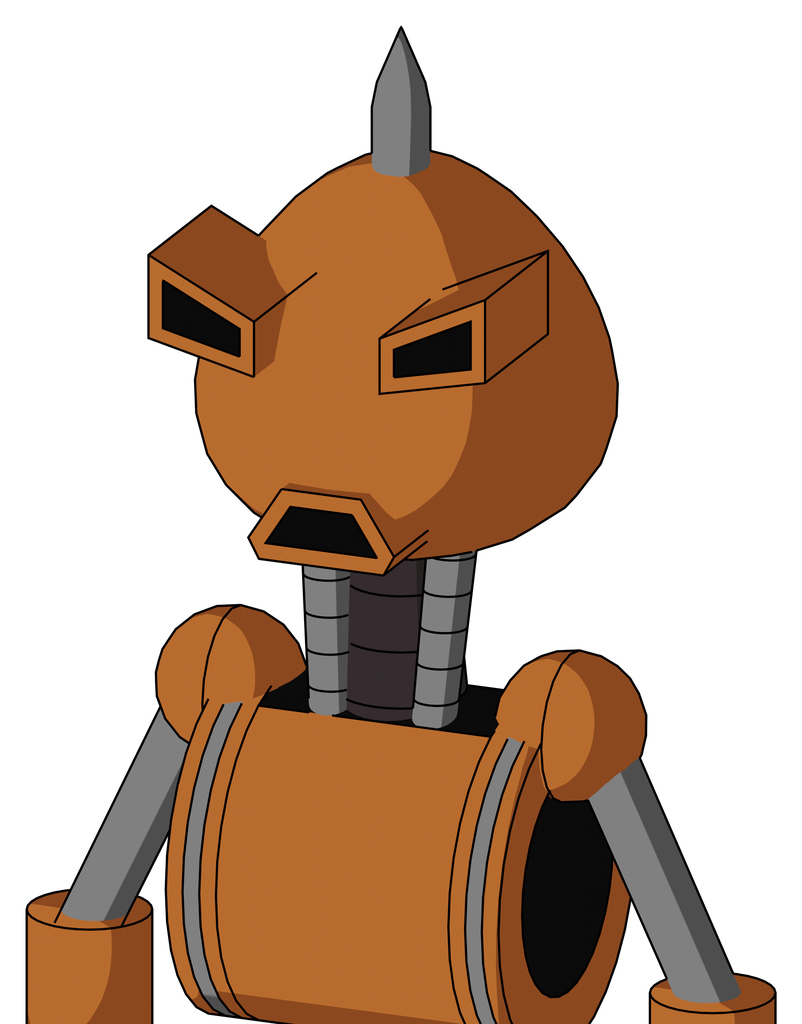 Orange Robot With Rounded Head And Sad Mouth And Angry Eyes And Spike Tip