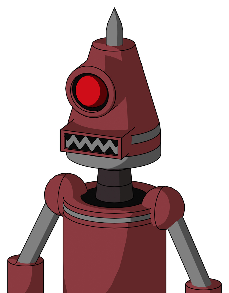 Red Mech With Cone Head And Square Mouth And Cyclops Eye And Spike Tip