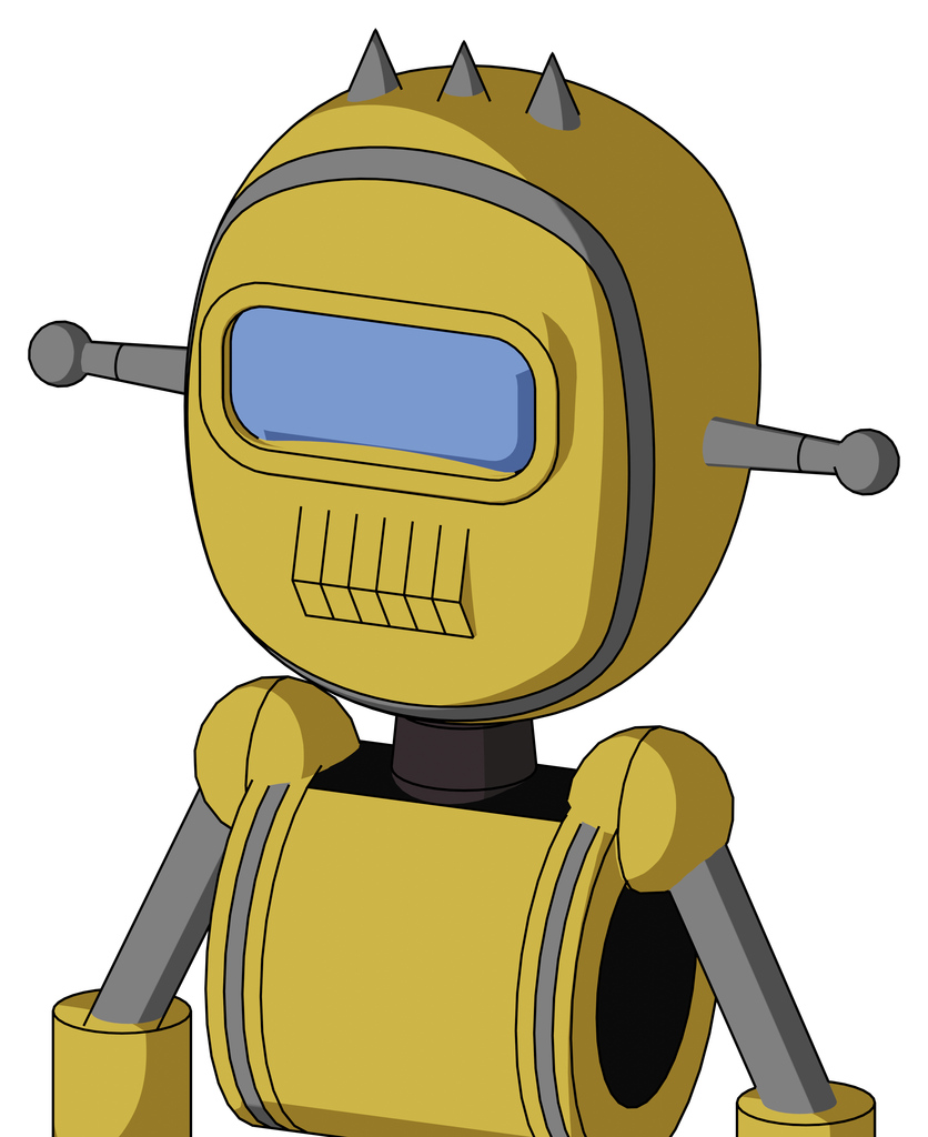 Yellow Droid With Bubble Head And Toothy Mouth And Large Blue Visor Eye And Three Spiked