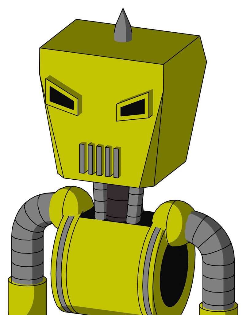 Yellow Robot With Box Head And Vent Mouth And Angry Eyes And Spike Tip