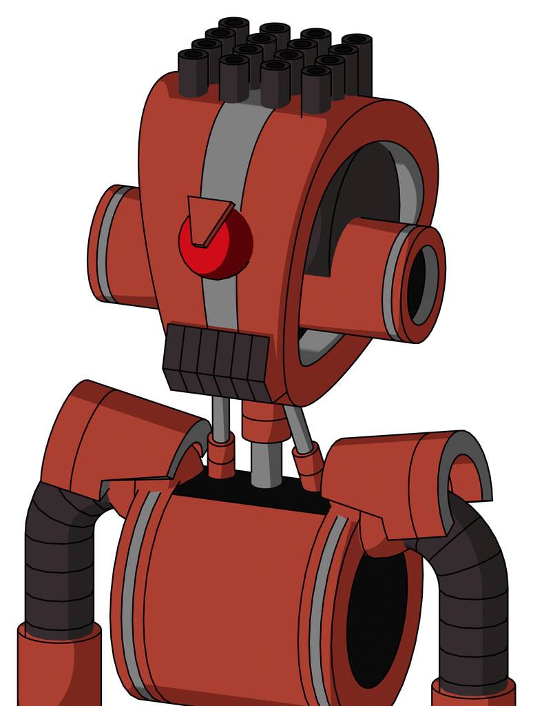 Red Automaton With Droid Head And Dark Tooth Mouth And Angry Cyclops And Pipe Hair