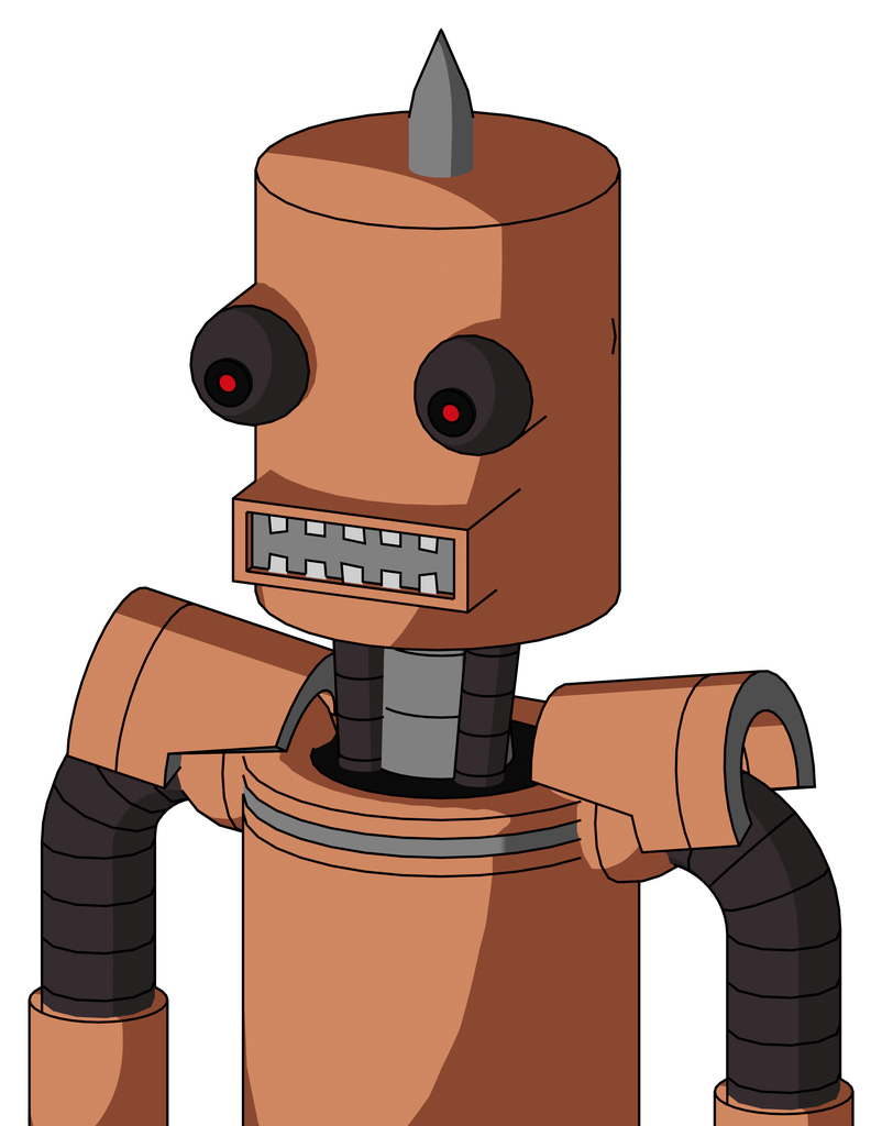 Peach Robot With Cylinder Head And Square Mouth And Red Eyed And Spike Tip
