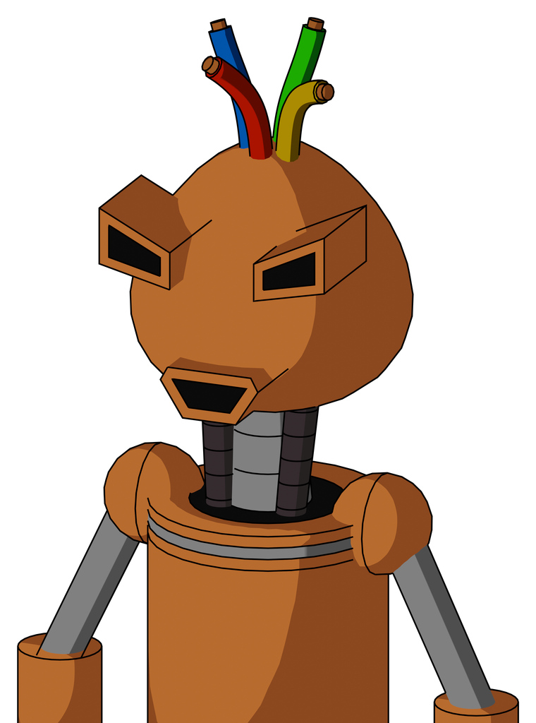 Orange Robot With Rounded Head And Happy Mouth And Angry Eyes And Wire Hair