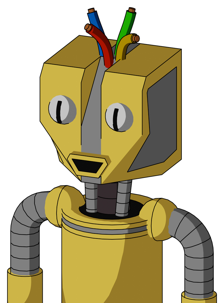 Yellow Droid With Mechanical Head And Happy Mouth And Two Eyes And Wire Hair