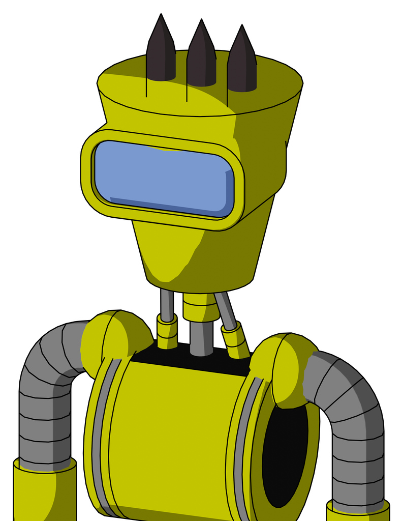 Yellow Robot With Cylinder-Conic Head And Large Blue Visor Eye And Three Dark Spikes