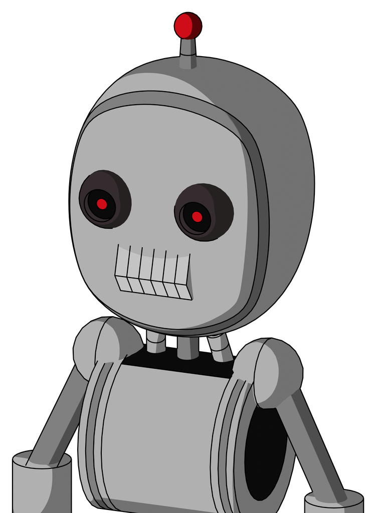 White Automaton With Bubble Head And Teeth Mouth And Black Glowing Red Eyes And Single Led Antenna