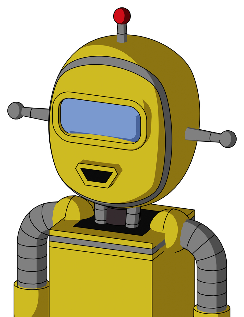 Yellow Droid With Bubble Head And Happy Mouth And Large Blue Visor Eye And Single Led Antenna