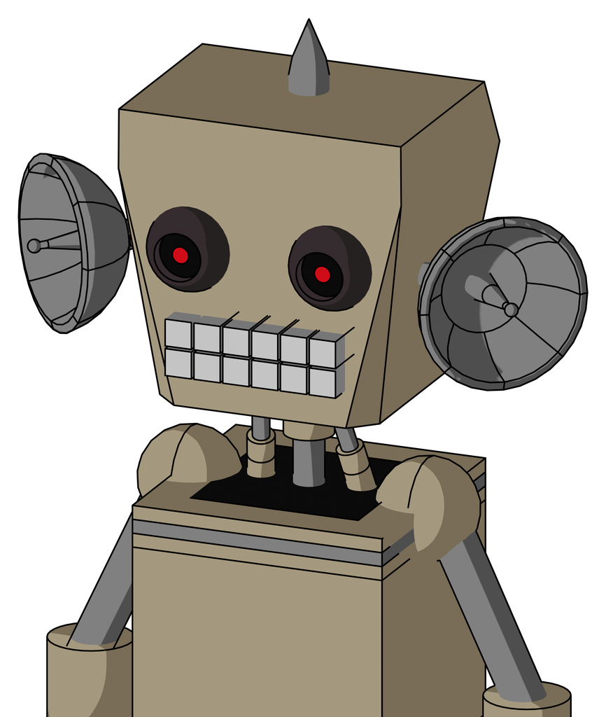 Tan Robot With Box Head And Keyboard Mouth And Black Glowing Red Eyes And Spike Tip