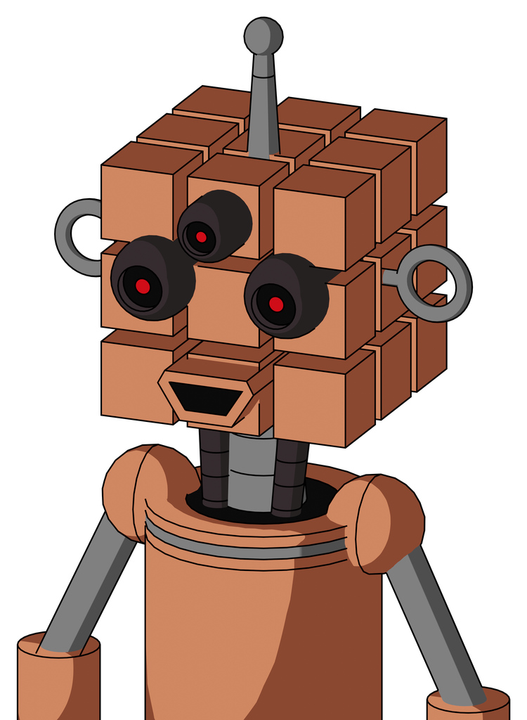 Peach Robot With Cube Head And Happy Mouth And Three-Eyed And Single Antenna