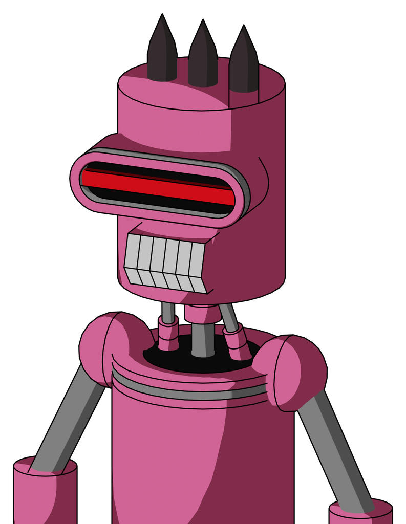 Pink Robot With Cylinder Head And Teeth Mouth And Visor Eye And Three Dark Spikes