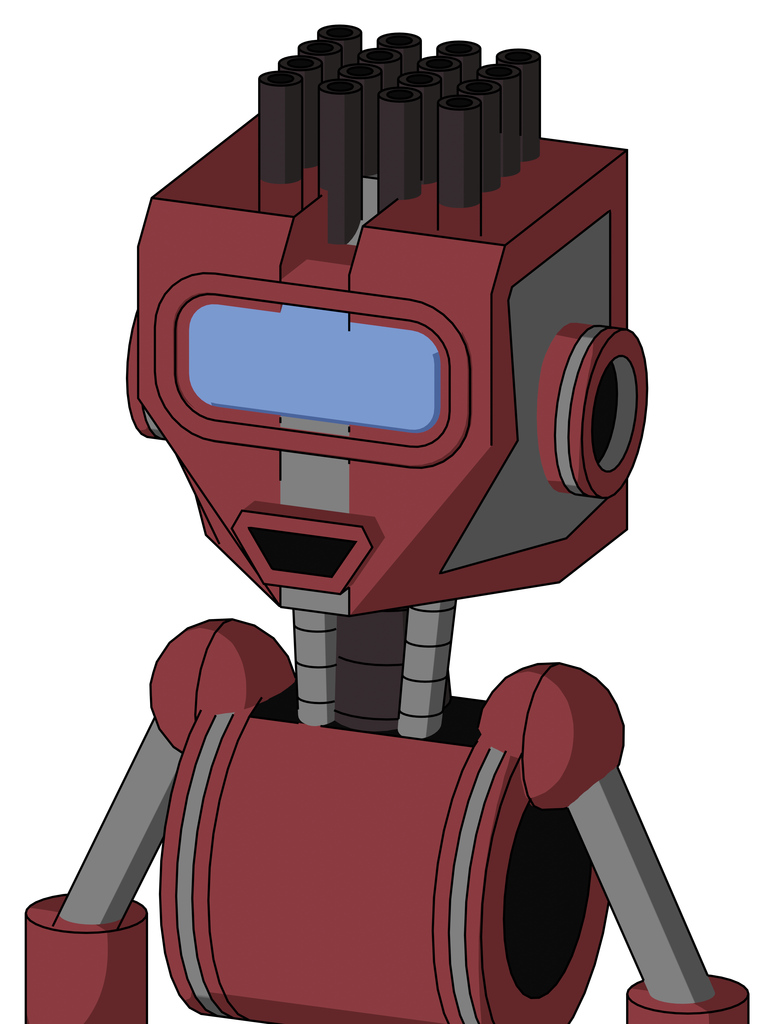 Red Mech With Mechanical Head And Happy Mouth And Large Blue Visor Eye And Pipe Hair