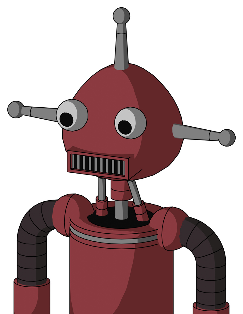 Red Mech With Rounded Head And Square Mouth And Two Eyes And Single Antenna