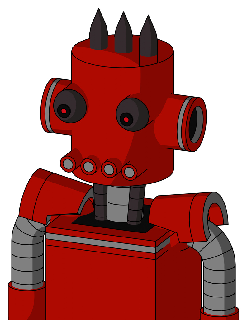 Red Mech With Cylinder Head And Pipes Mouth And Red Eyed And Three Dark Spikes