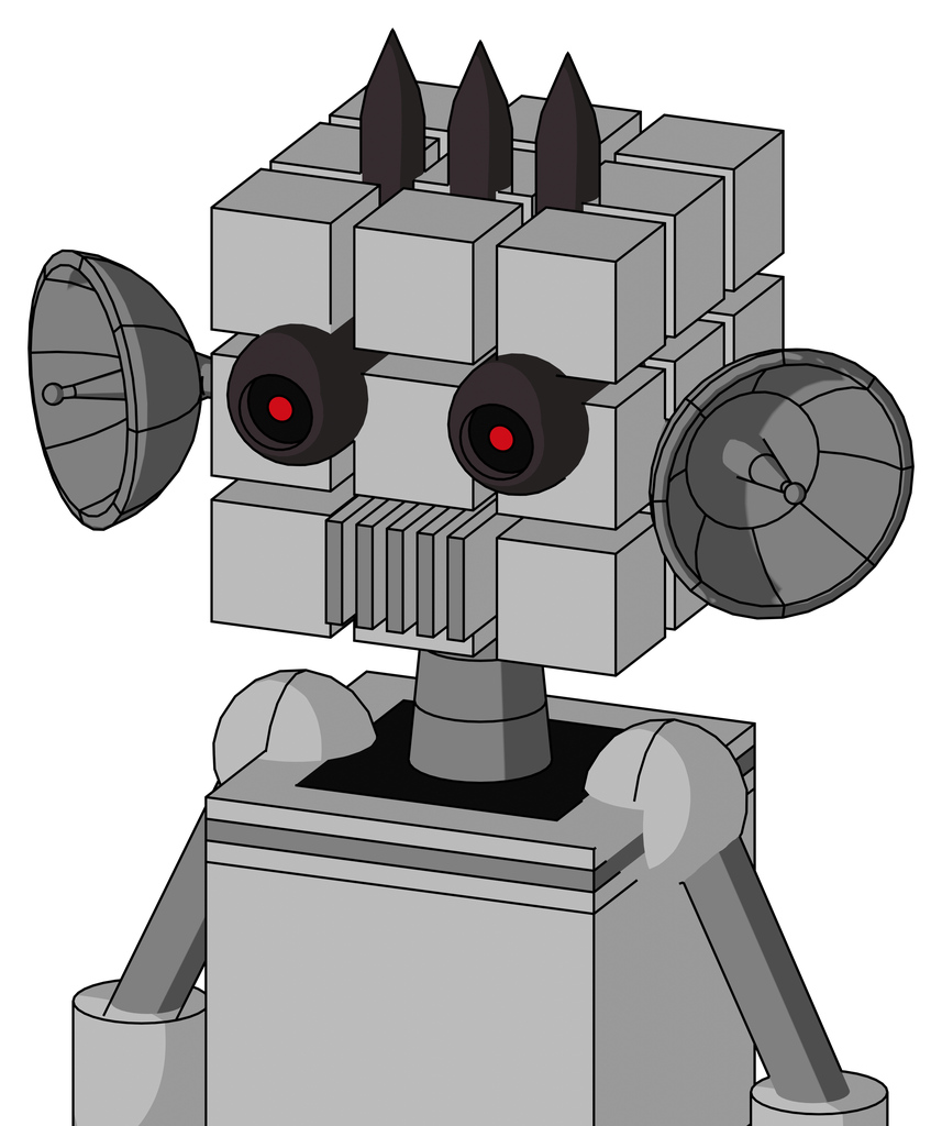 White Automaton With Cube Head And Vent Mouth And Black Glowing Red Eyes And Three Dark Spikes