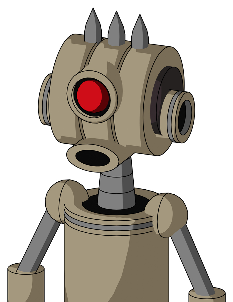 Tan Robot With Multi-Toroid Head And Round Mouth And Cyclops Eye And Three Spiked