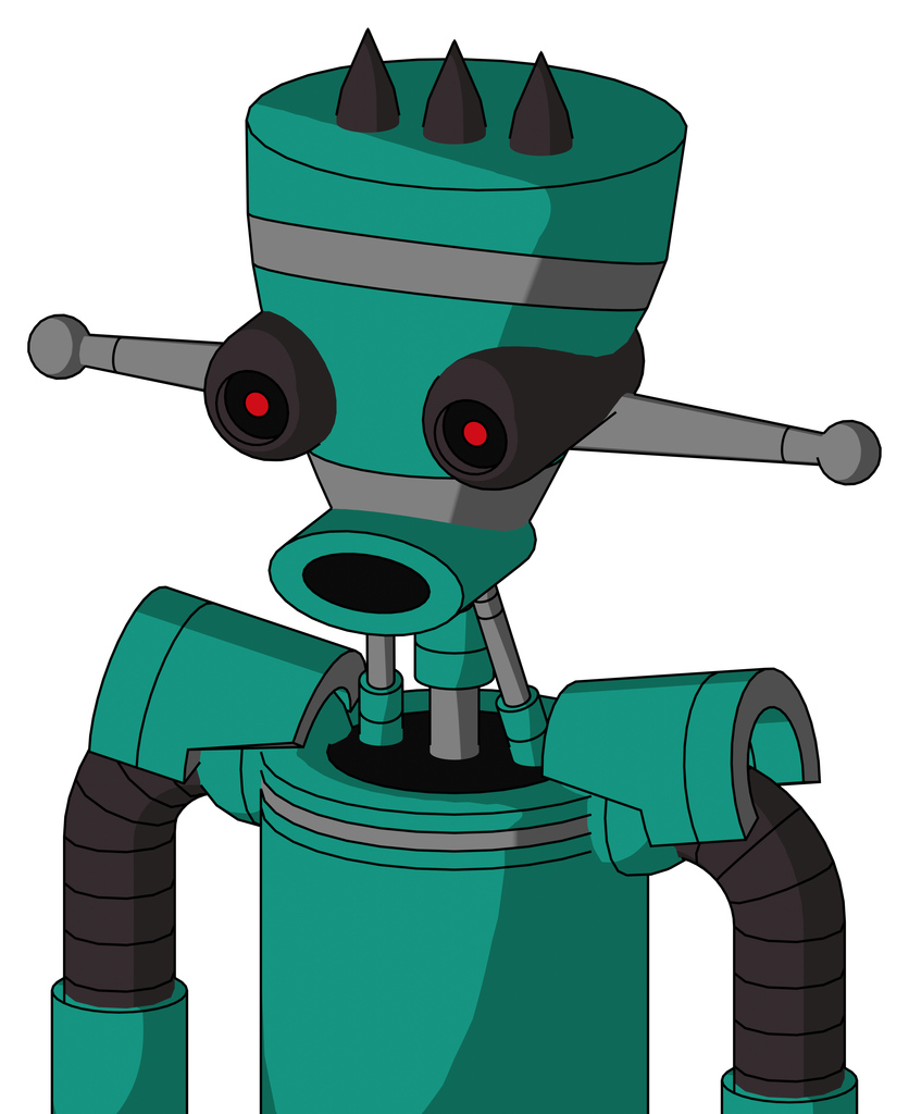 Green Automaton With Vase Head And Round Mouth And Black Glowing Red Eyes And Three Dark Spikes