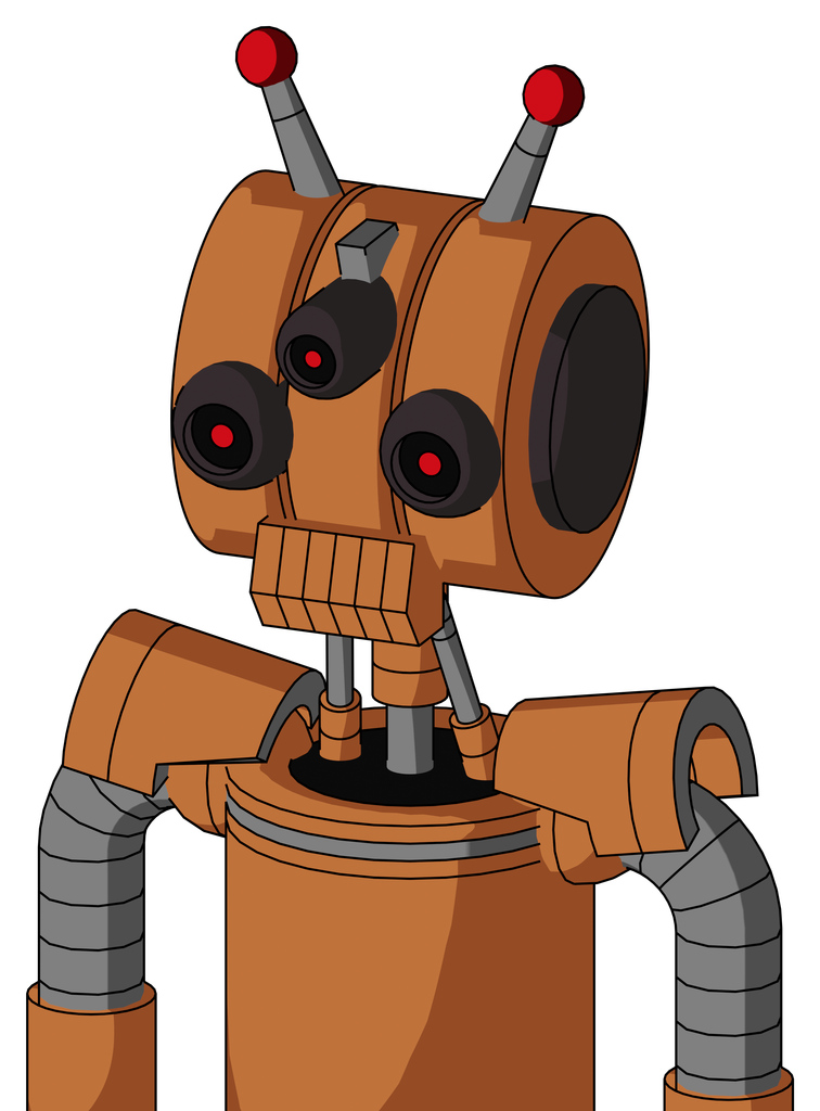 Orange Droid With Multi-Toroid Head And Toothy Mouth And Three-Eyed And Double Led Antenna