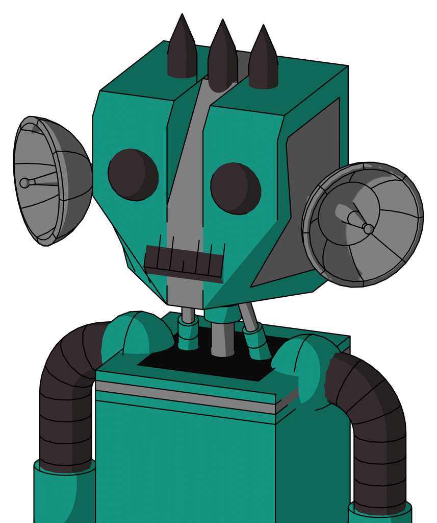 Green Automaton With Mechanical Head And Dark Tooth Mouth And Two Eyes And Three Dark Spikes