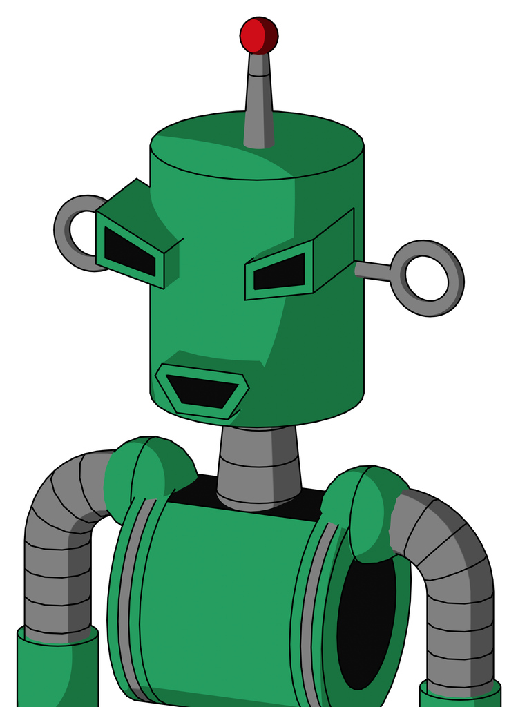 Green Automaton With Cylinder Head And Happy Mouth And Angry Eyes And Single Led Antenna