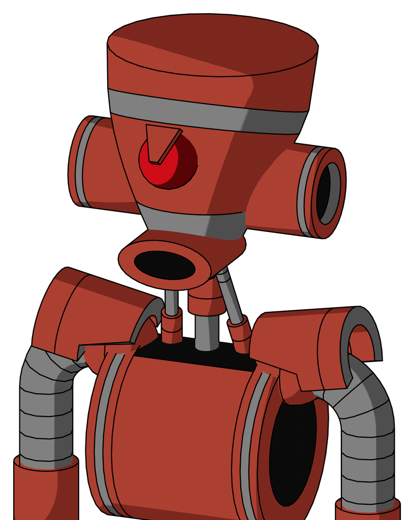 Red Automaton With Vase Head And Round Mouth And Angry Cyclops