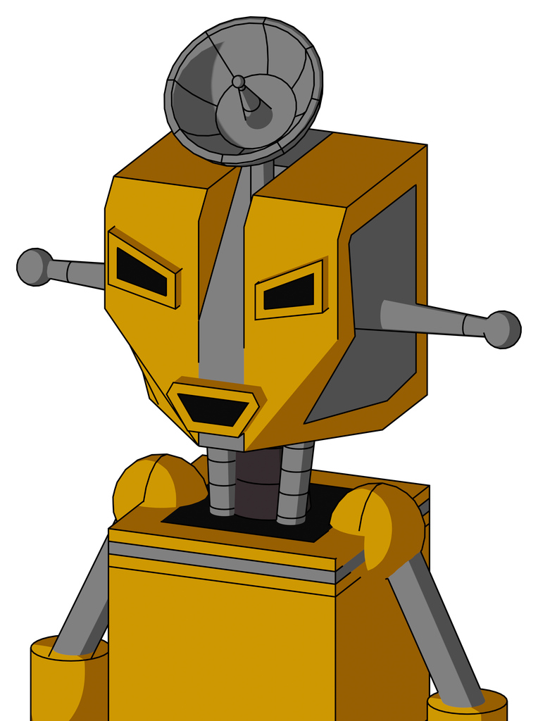 Yellow Robot With Mechanical Head And Happy Mouth And Angry Eyes And Radar Dish Hat
