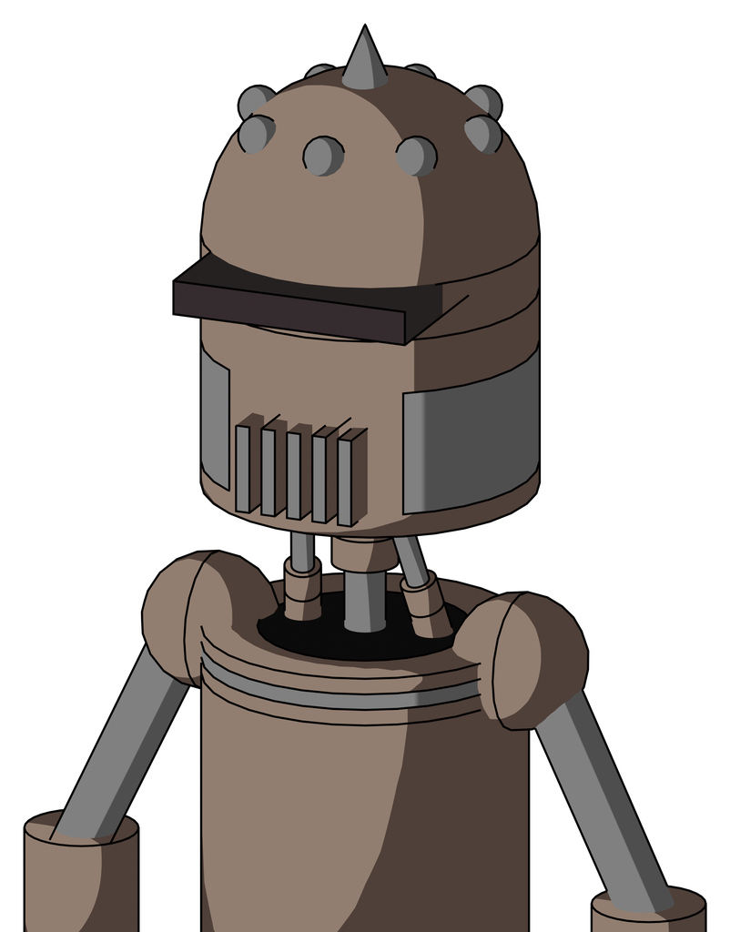 Gray Robot With Dome Head And Vent Mouth And Black Visor Cyclops And Spike Tip
