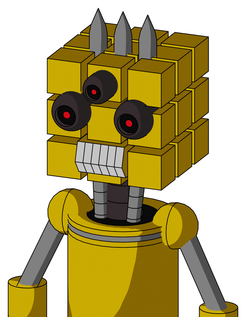 Yellow Droid With Cube Head And Teeth Mouth And Three-Eyed And Three Spiked