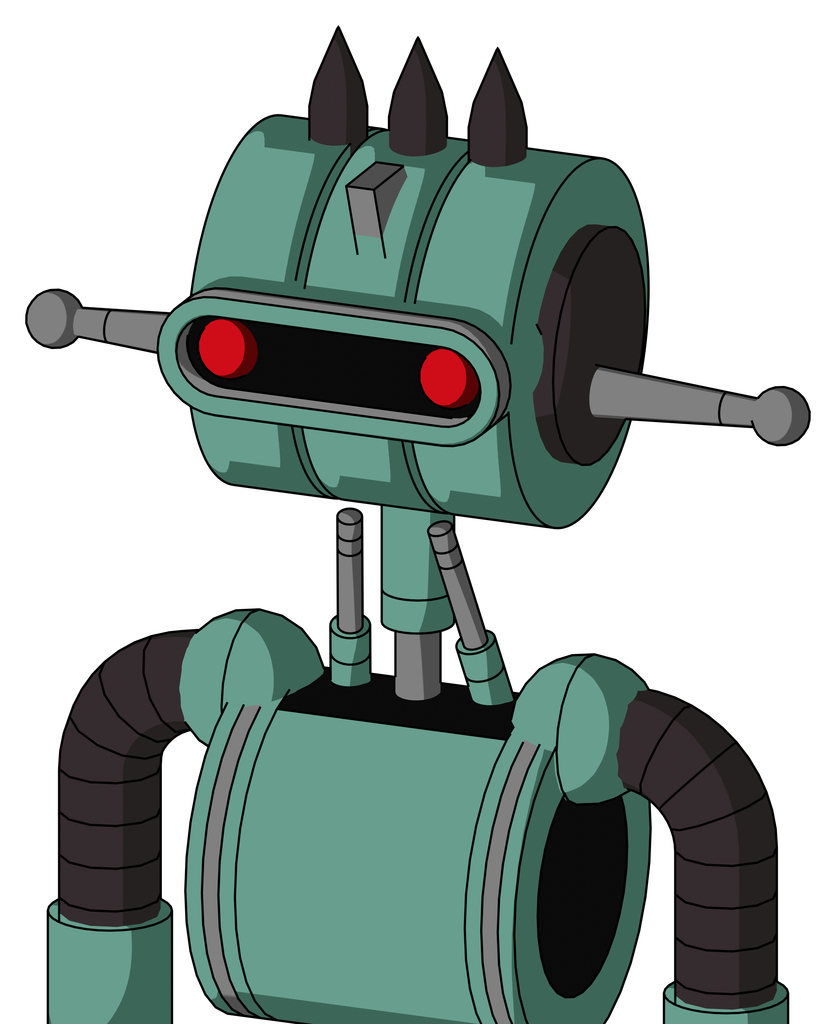 Green Mech With Multi-Toroid Head And Visor Eye And Three Dark Spikes