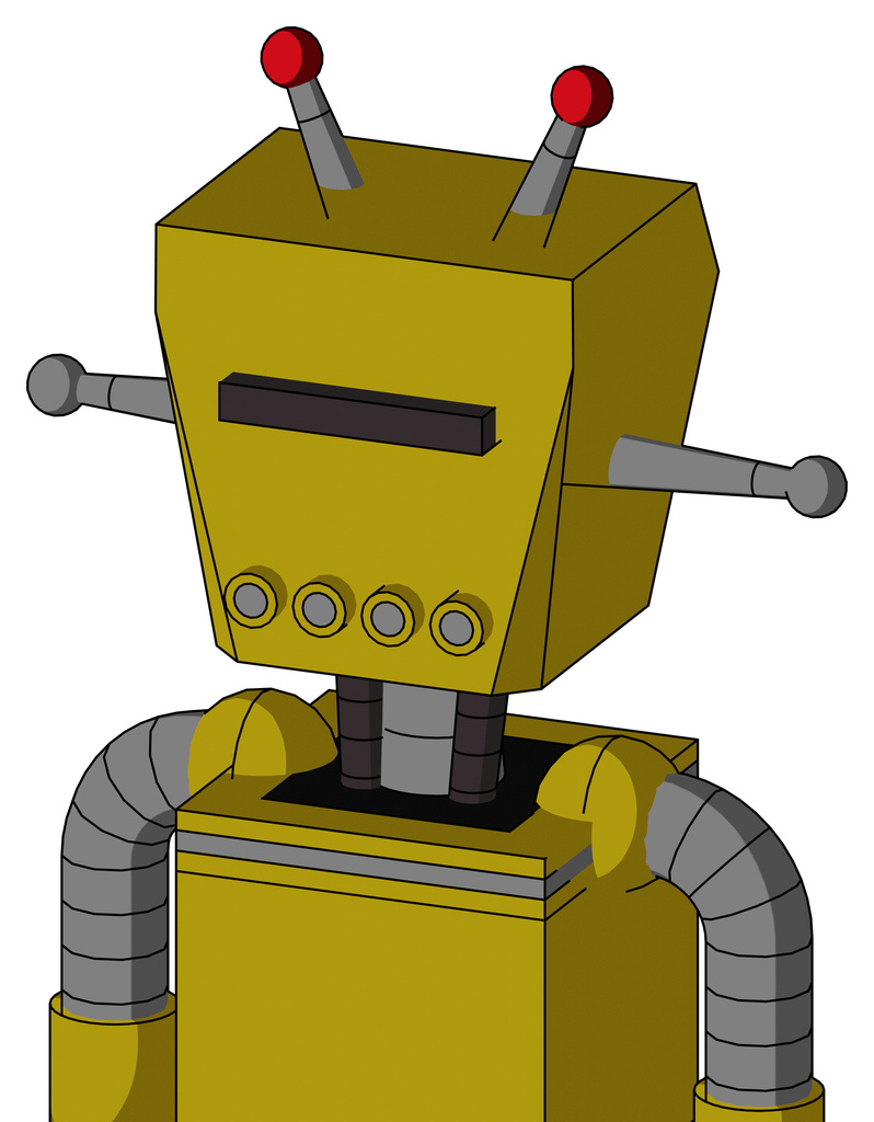 Yellow Automaton With Box Head And Pipes Mouth And Black Visor Cyclops And Double Led Antenna
