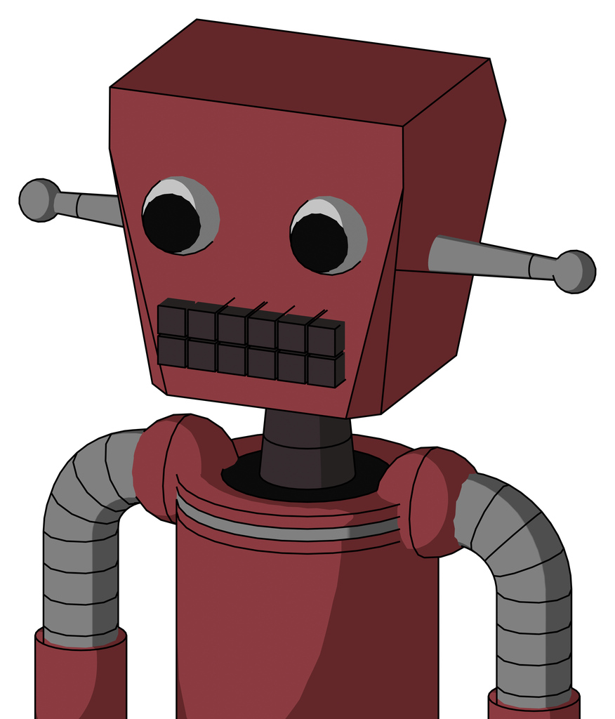 Red Mech With Box Head And Keyboard Mouth And Two Eyes