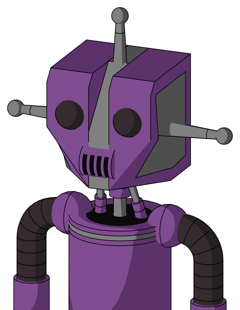 Purple Automaton With Mechanical Head And Speakers Mouth And Two Eyes And Single Antenna