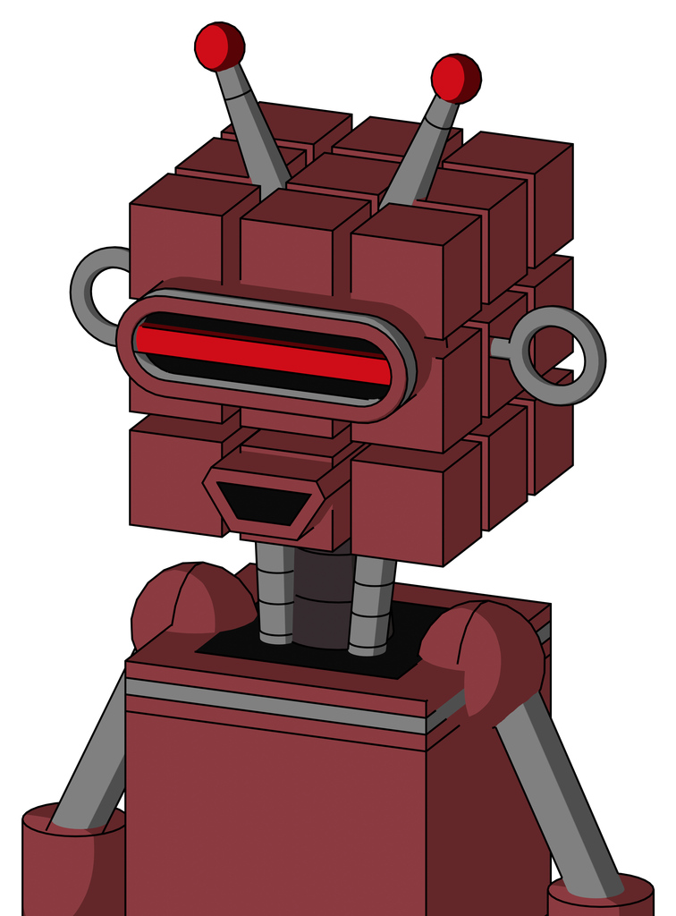 Red Mech With Cube Head And Happy Mouth And Visor Eye And Double Led Antenna