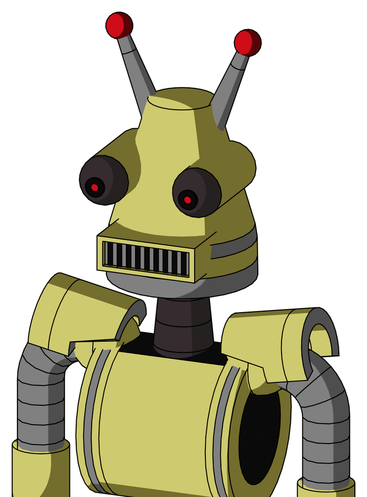 Yellow Robot With Cone Head And Square Mouth And Red Eyed And Double Led Antenna