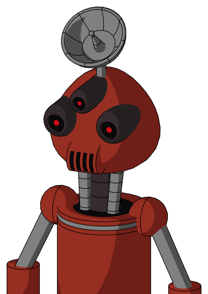 Red Automaton With Rounded Head And Speakers Mouth And Three-Eyed And Radar Dish Hat