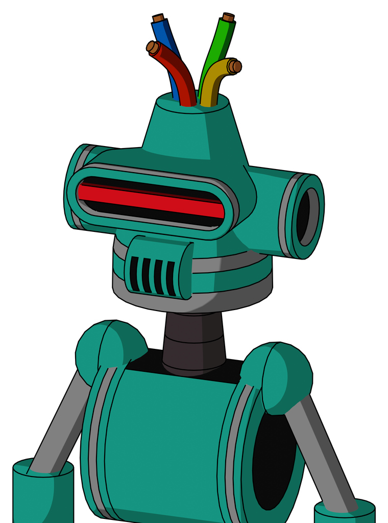Green Automaton With Cone Head And Speakers Mouth And Visor Eye And Wire Hair