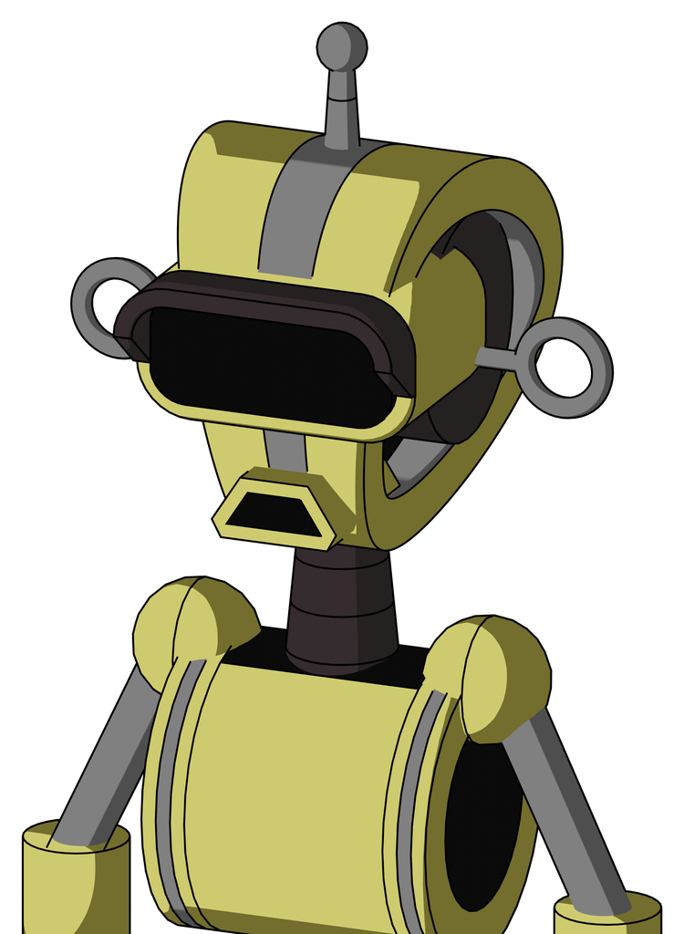 Yellow Robot With Droid Head And Sad Mouth And Black Visor Eye And Single Antenna