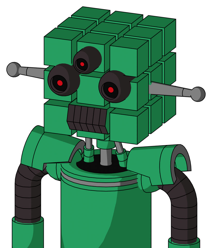 Green Automaton With Cube Head And Dark Tooth Mouth And Three-Eyed