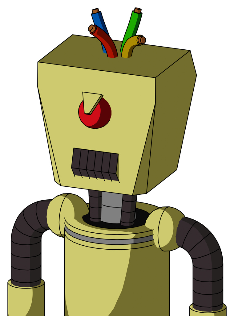 Yellow Robot With Box Head And Dark Tooth Mouth And Angry Cyclops And Wire Hair