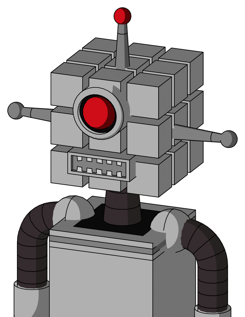 White Automaton With Cube Head And Square Mouth And Cyclops Eye And Single Led Antenna