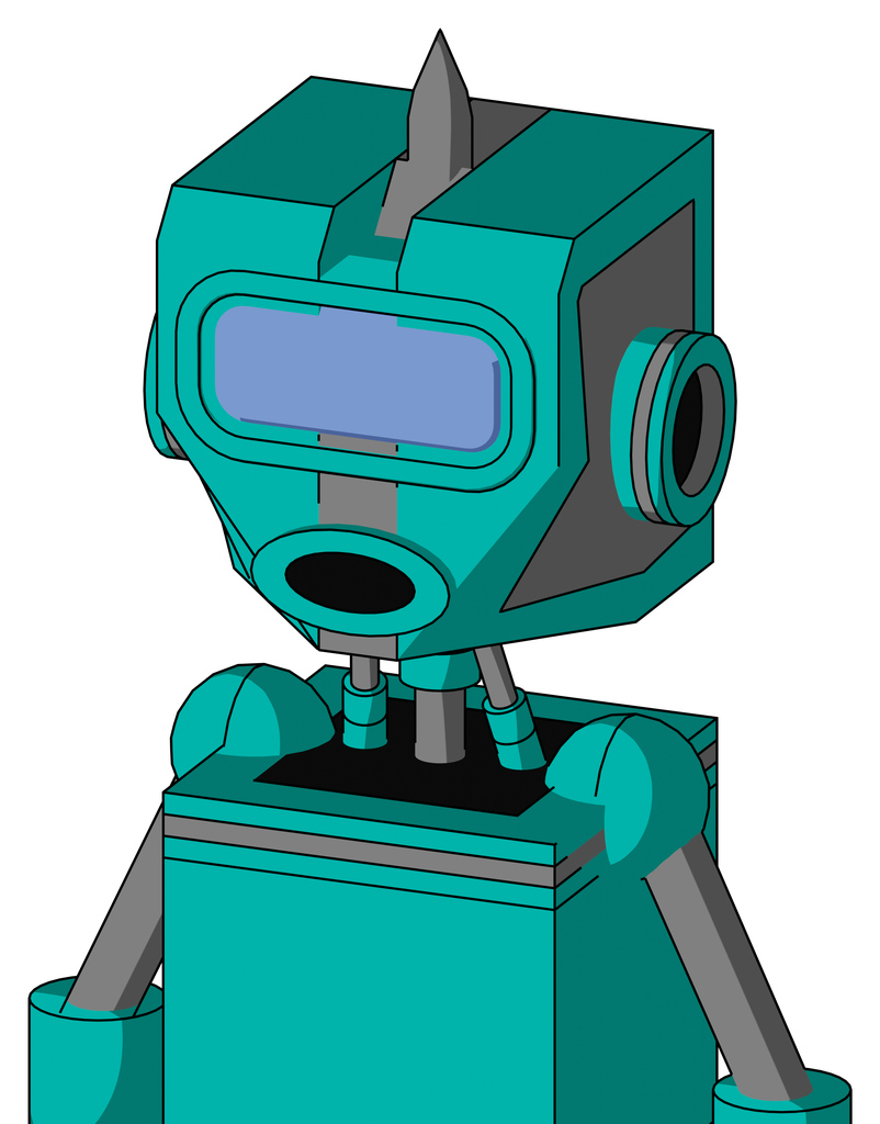 Greenish Robot With Mechanical Head And Round Mouth And Large Blue Visor Eye And Spike Tip