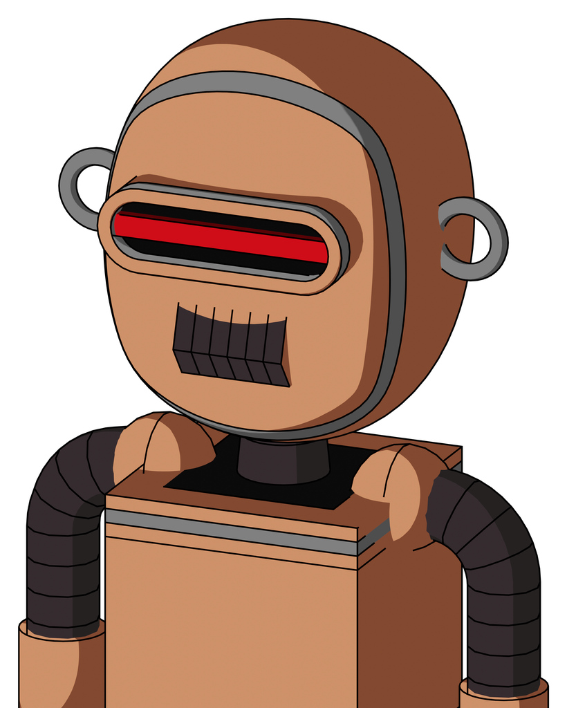 Peach Robot With Bubble Head And Dark Tooth Mouth And Visor Eye