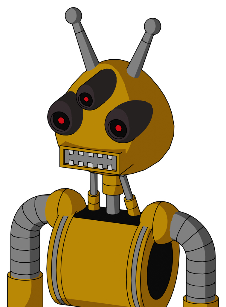 Yellow Droid With Rounded Head And Square Mouth And Three-Eyed And Double Antenna