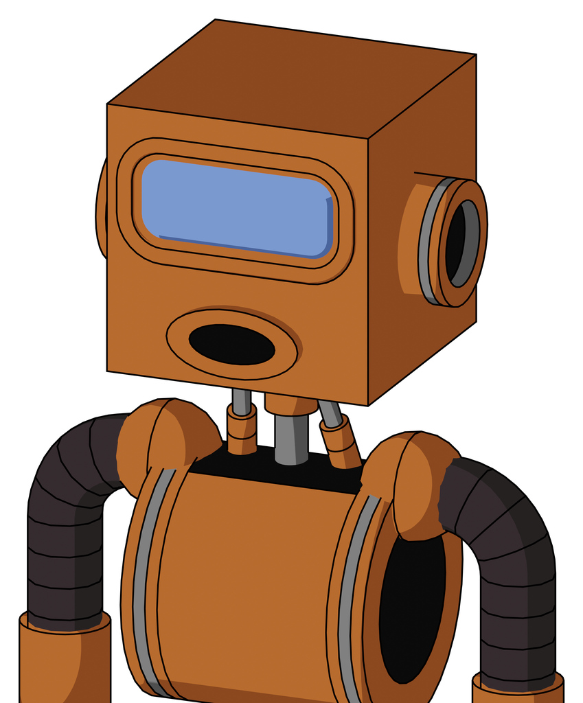 Orange Robot With Box Head And Round Mouth And Large Blue Visor Eye