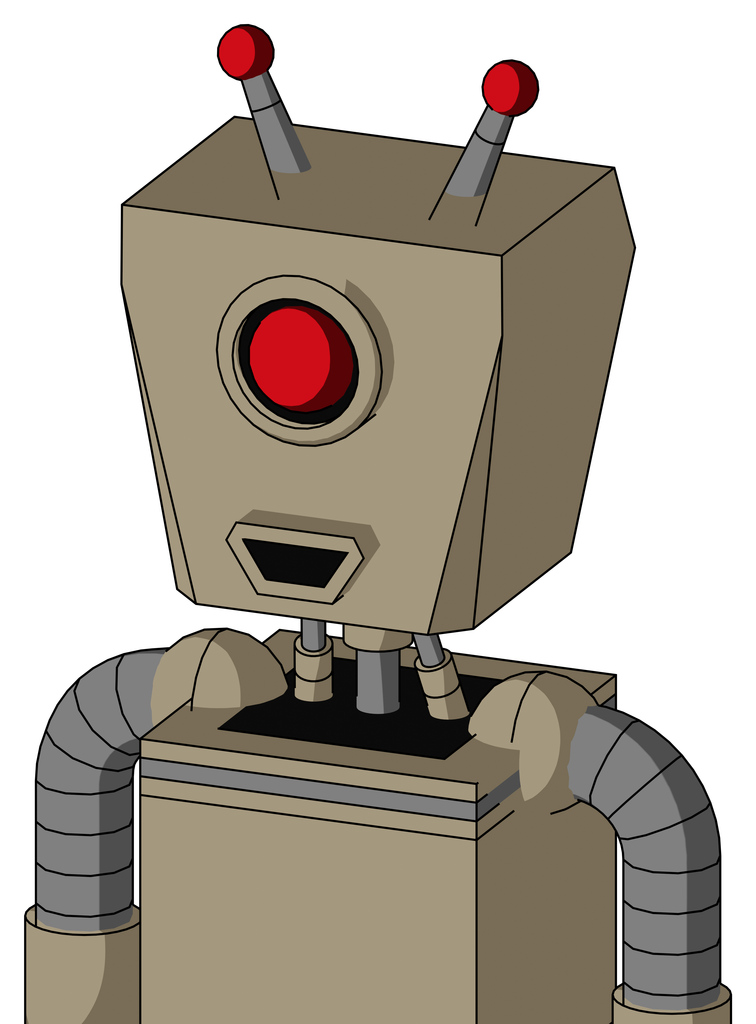 Tan Robot With Box Head And Happy Mouth And Cyclops Eye And Double Led Antenna