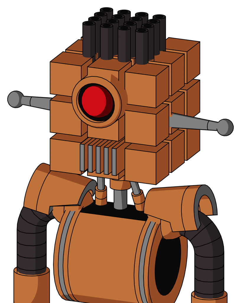Orange Droid With Cube Head And Vent Mouth And Cyclops Eye And Pipe Hair