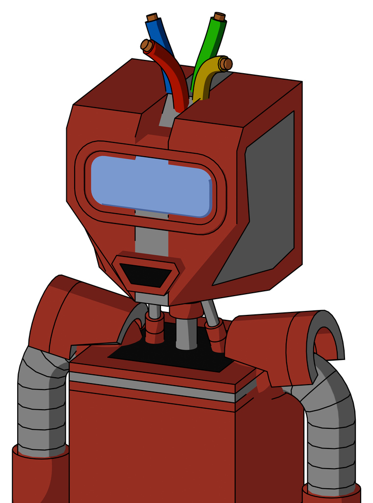 Red Automaton With Mechanical Head And Happy Mouth And Large Blue Visor Eye And Wire Hair