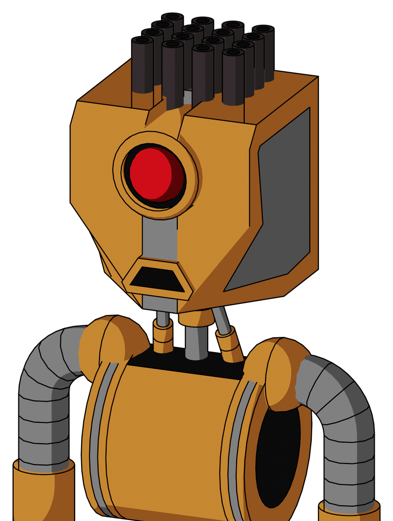 Peach Droid With Mechanical Head And Sad Mouth And Cyclops Eye And Pipe Hair