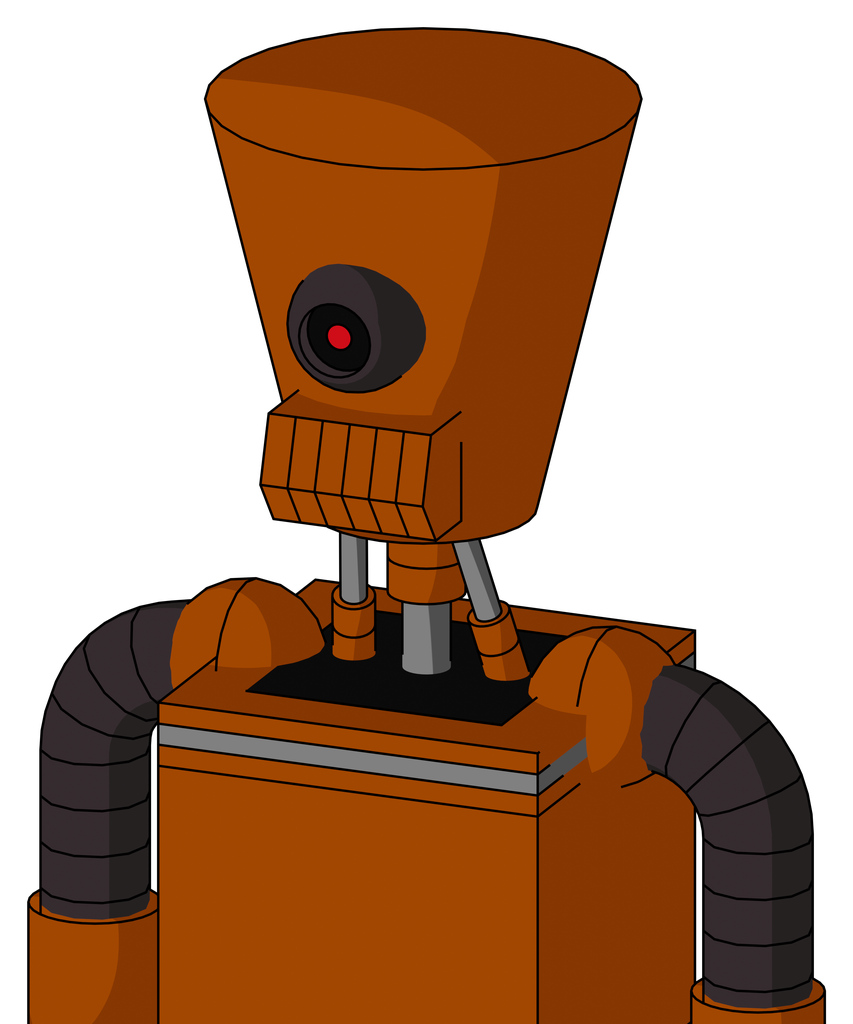 Redish-Orange Mech With Cylinder-Conic Head And Toothy Mouth And Black Cyclops Eye