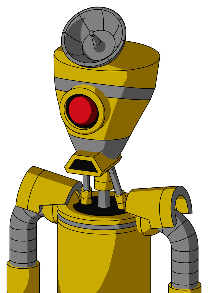 Yellow Droid With Vase Head And Sad Mouth And Cyclops Eye And Radar Dish Hat